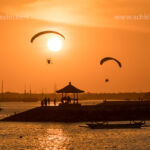 Gleitschirmflieger bei Sonnenuntergang über dem Strand von Sanur, Bali, Indonesien | flying paragliders during sunset over the beach in Sanur, Bali, Indonesia
