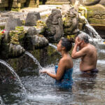 Wasserbecken mit heiligen Quellen der Tempelanlage Pura Tirta Empul bei Ubud, Bali, Indonesien | bathing structure with holy spring water of the Hindu water temple Tirta Empul near Ubud, Bali, Indonesia