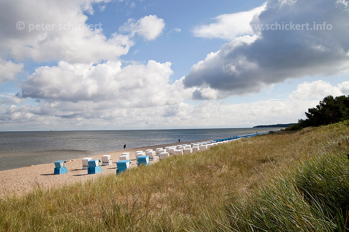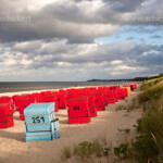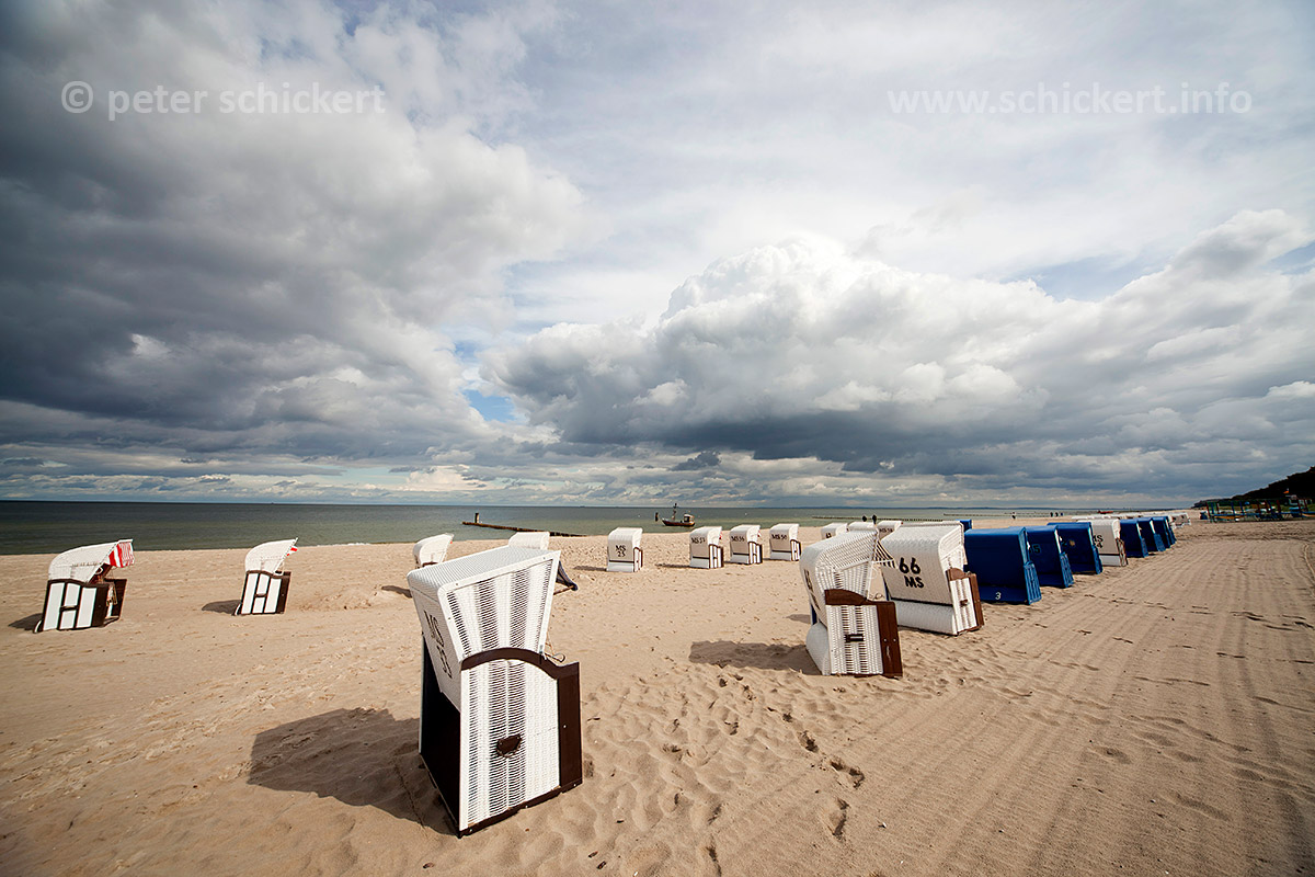 Strandkörbe und Ostseestrand des Seebad Lubmin, Mecklenburg-Vorpommern, Deutschland | Beach chairs “ Strandkorb “ and the baltic beach of the coastal resort of Lubmin, Mecklenburg-Vorpommern, Germany