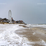 Der verschneite Ostseestrand und das Riesenrad im Ostseebad Kühlungsborn im Winter, Mecklenburg-Vorpommern, Deutschland | Snowy Baltic beach and the Ferris wheel in Kühlungsborn in winter, Mecklenburg-Vorpommern, Germany