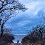 Schilf und Spaziergaenger am Ufer des Greifswalder Bodden, Hansestadt Greifswald, Mecklenburg-Vorpommern, Deutschland | couple walking at the shore of the Bay of Greifswald, Hanseatic City of Greifswald, Mecklenburg-Vorpommern, Germany