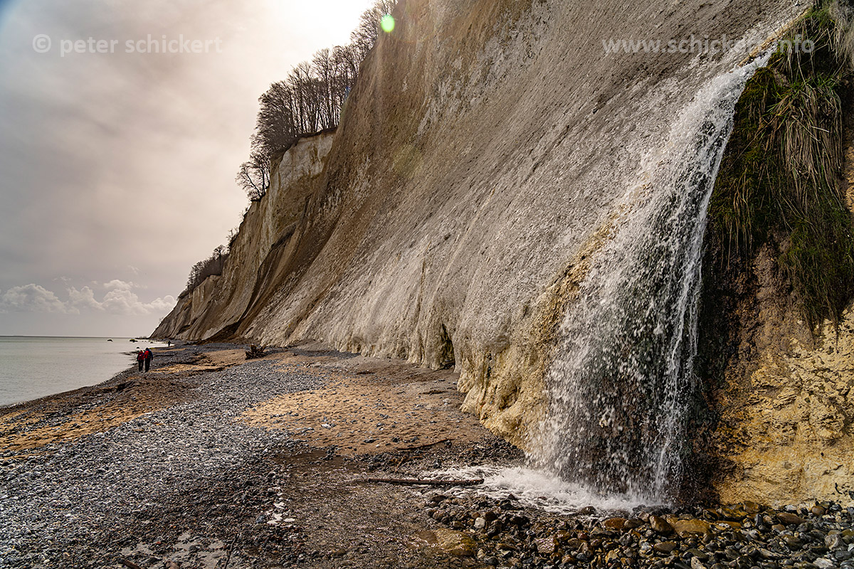 Wasserfall des Kieler Baches am Kieler Ufer und die berühmten Kreidefelsen an der Ostseeküste im Nationalpark Jasmund, Insel Ruegen, Mecklenburg-Vorpommern, Deutschland | Waterfall on the shore of Kiel and the famous chalk cliffs on the baltic coast of the Jasmund National Park, Ruegen island, Mecklenburg-Vorpommern, Germany