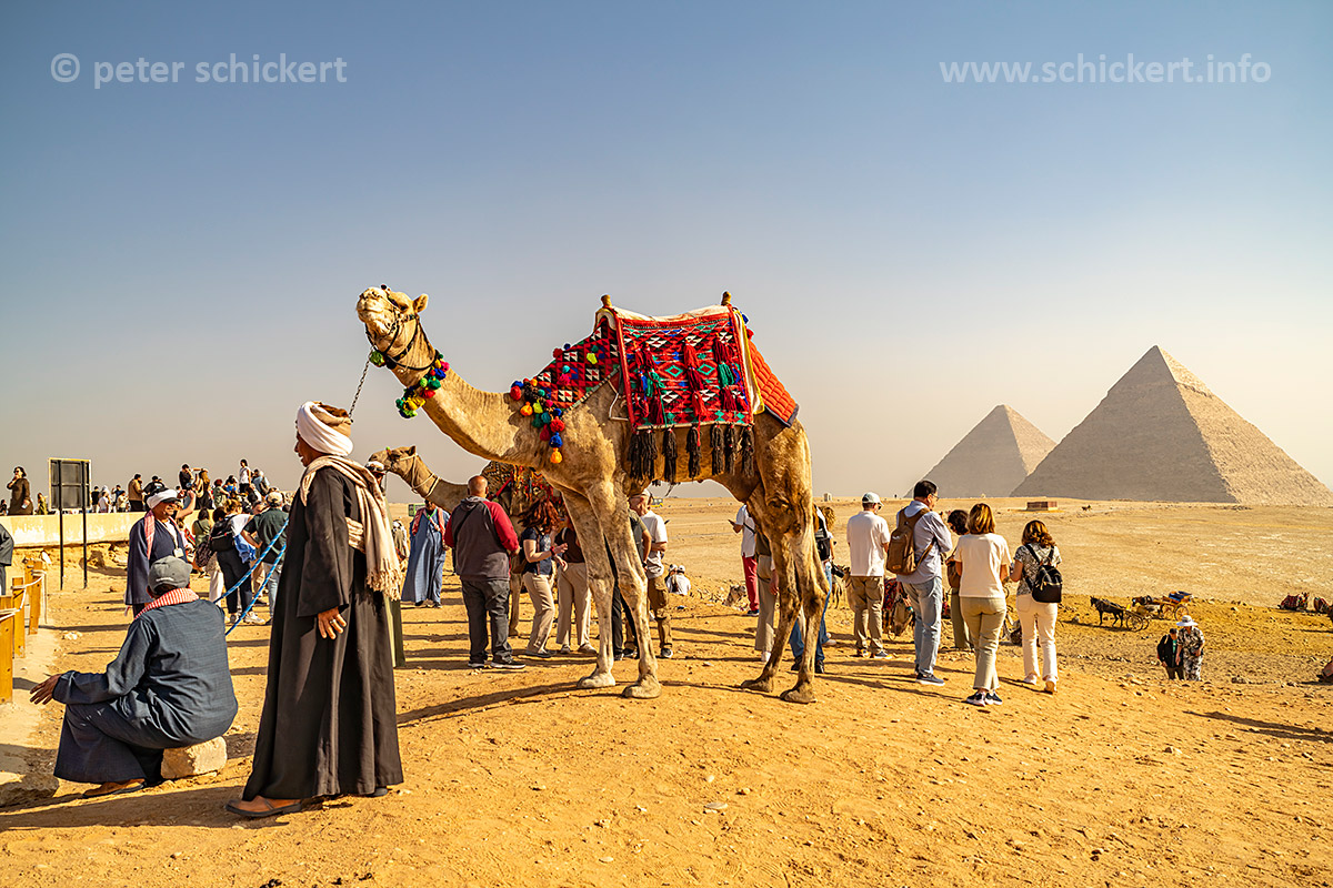 Touristen bei den Pyramiden von Gizeh, Ägypten, Afrika | Tourists at the pyramids in Giza, Egypt, Africa
