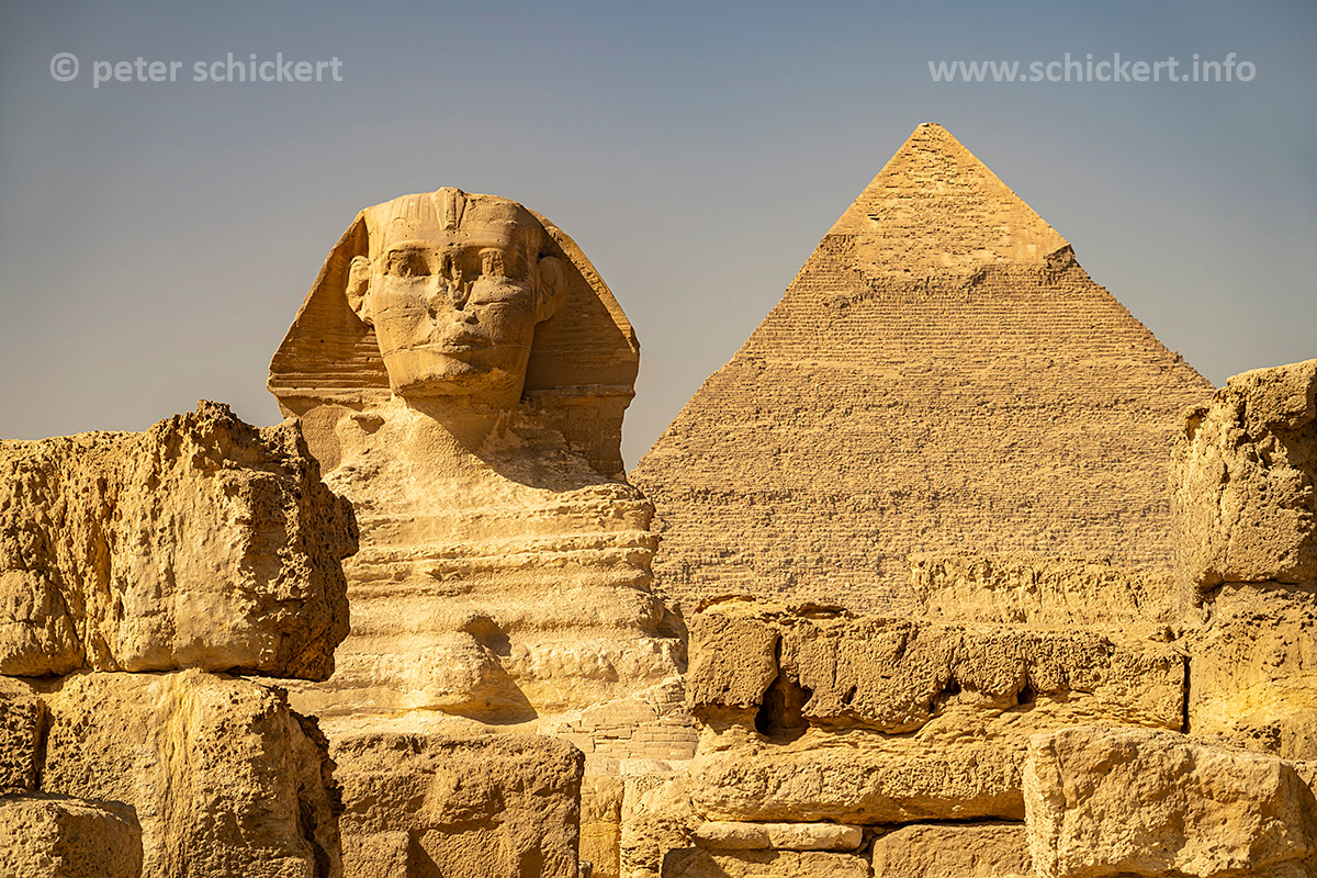 Die Große Sphinx und die Chephren-Pyramide in Gizeh, Ägypten, Afrika | The Great Sphinx and the pyramid of Khafre or Chephren in Giza, Egypt, Africa