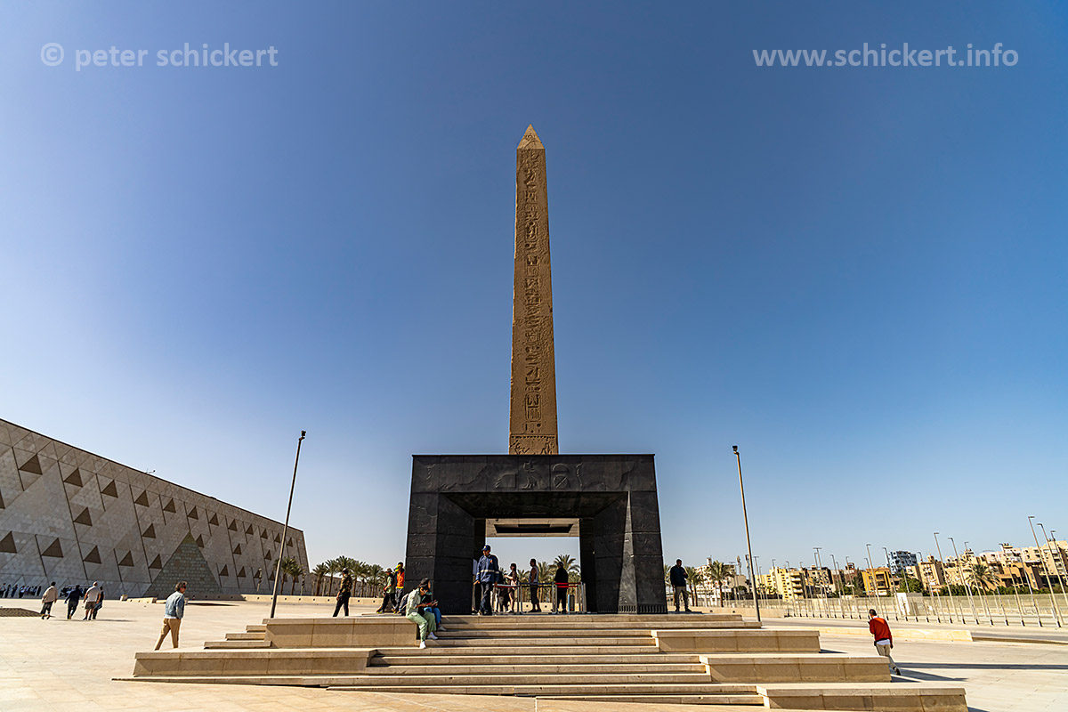 Der hängende Obelisk von Pharao Ramses II am Haupteingang des Grand Egyptian Museum in Gizeh, Ägypten, Afrika | The Hanging Obelisk of Pharaoh Ramesses II at the main gate of the Grand Egyptian Museum in Giza, Egypt, Africa