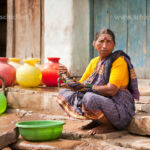 ältere Frau bei der Handwäsche, Aihole, Karnataka, Indien, Asien | elderly woman hand washing her laundry, Aihole, Karnataka, India, Asia