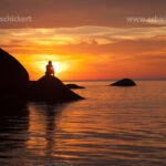 Tourist beobachtet den Sonnenuntergang am Strand von Palolem, Goa, Indien, Asien | tourist watching the sunset at Palolem Beach, Goa, India, Asia