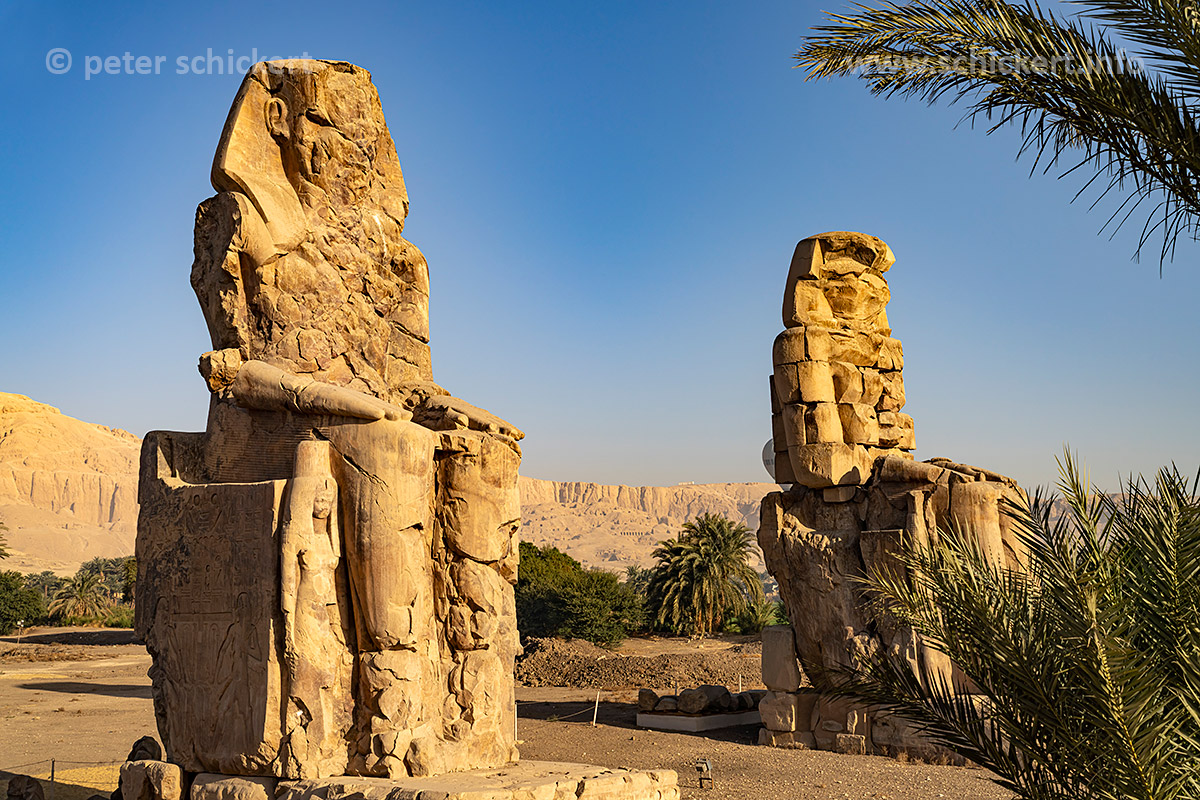 Die Memnonkolosse im Niltal in Theben-West bei Luxor, Ägypten, Afrika | The Colossi of Memnon in Thebes near Luxor, Egypt, Africa