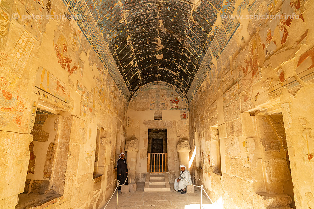 Heiligtum des Amun-Re im Totentempel der Hatschepsut und des Mentuhotep II in Deir el-Bahari, Theben West bei Luxor, Ägypten, Afrika | Barque hall of the shrine to Amun, Mortuary temple of Hatshepsut and Nebhepetre Mentuhotep in Deir el-Bahari or Dayr al-Bahri, Thebes near Luxor, Egypt, Africa