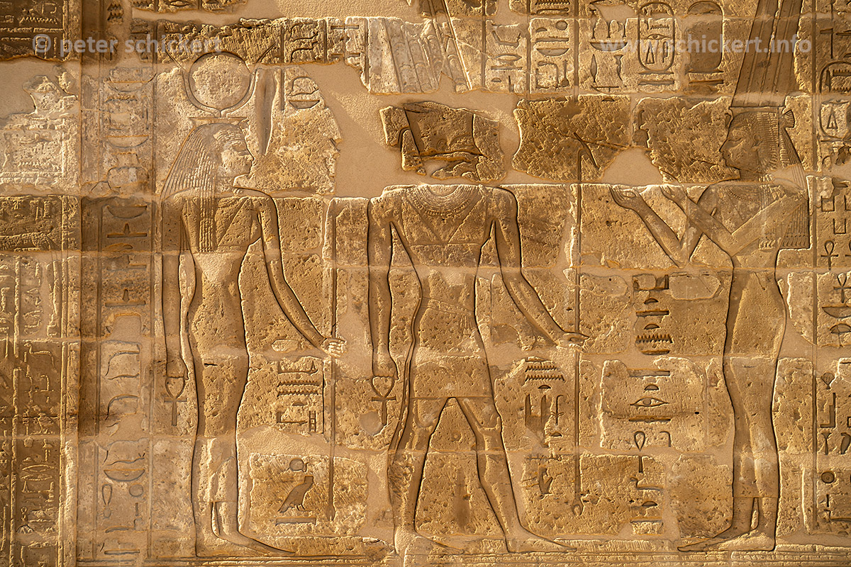Relief des Totentempel des Ramses III. in Medinet Habu, Theben-West bei Luxor, Ägypten, Afrika | Wall relief of the Mortuary Temple of Ramesses III in Medinet Habu, Thebes near Luxor, Egypt, Africa
