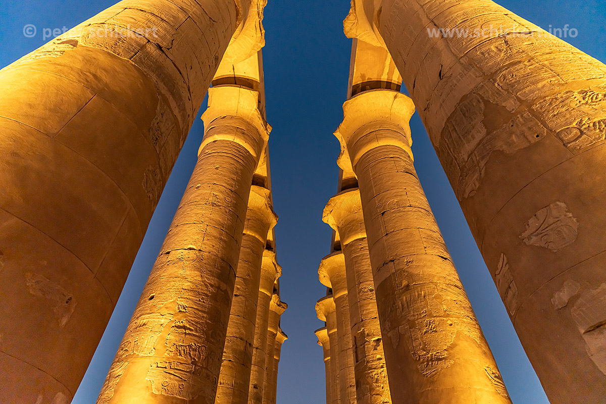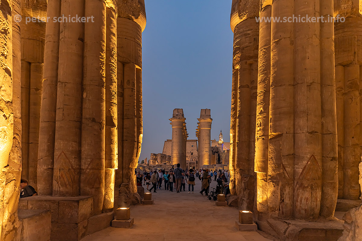 Säulenhalle im Luxor-Tempel in Luxor in der Abenddämmerung, Ägypten, Afrika | Colonnade of the Luxor Temple in Luxor at dusk, Egypt, Africa