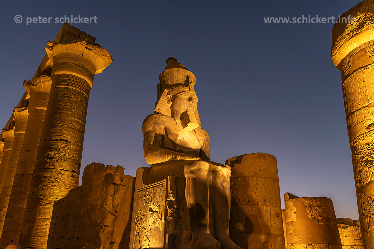 Ramses Statue im Luxor-Tempel in Luxor in der Abenddämmerung, Ägypten, Afrika | Statue of Ramesses at the Luxor Temple in Luxor at dusk, Egypt, Africa