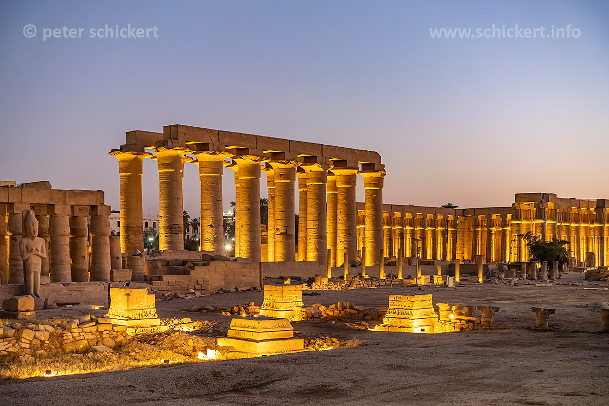 Statuen und Kolonnade im Luxor-Tempel in Luxor in der Abenddämmerung, Ägypten, Afrika | Statues and Colonnade of the Luxor Temple in Luxor at dusk, Egypt, Africa