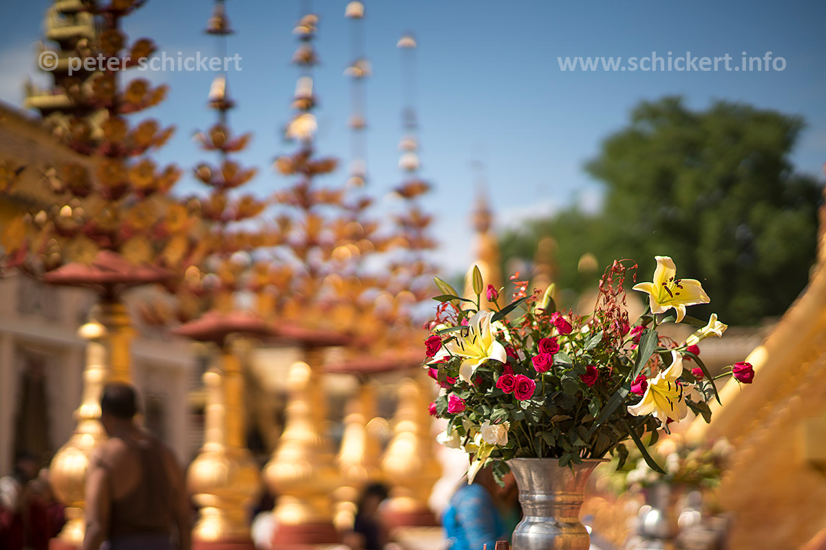 Etwas weiter liegt noch ein verfallenes Kloster – hier übernachten aber trotzdem einige Burmesen. Und machen sich grade abfahrbereit. Nebenan ist wohl auch noch ein aktives Kloster, und wieder führen mich die Mönche stolz durch ihr Reich. Klasse. Für den Rest des Tages nehme ich dann aber diesmal das Fahrrad.