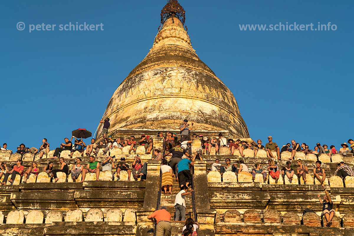 Mein nettes kleines chinesische Elektromobil steht natürlich nicht mehr wie vereinbart pünktlich zum Sonnenaufgang bereit. Wenn ich schon mal früh aufstehe. Dann muss ich eben zu Fuß los, gleich in der Nähe sind ja auch schon die ersten Tempel. Zur Not eben auch mal querfeldein, hier haben die Tempel jetzt nur noch Nummern – und keine Namen. Dafür bin ich weit und breit der einzige Europäer – auch mal ganz angenehm, ansonsten muss man hier in Bagan ja leider schon von Massentourismus reden.