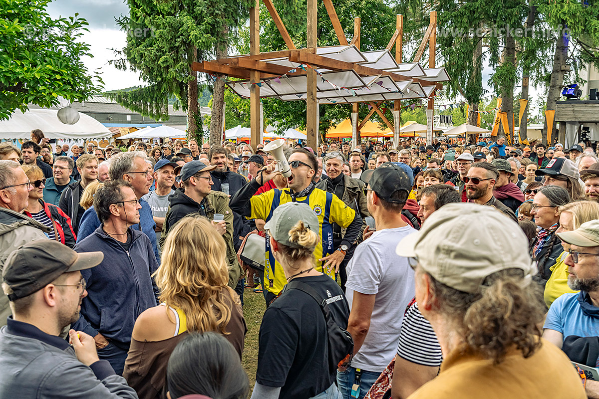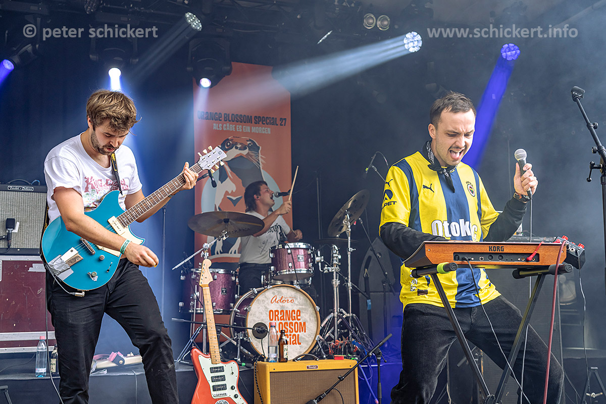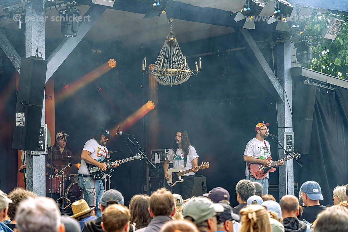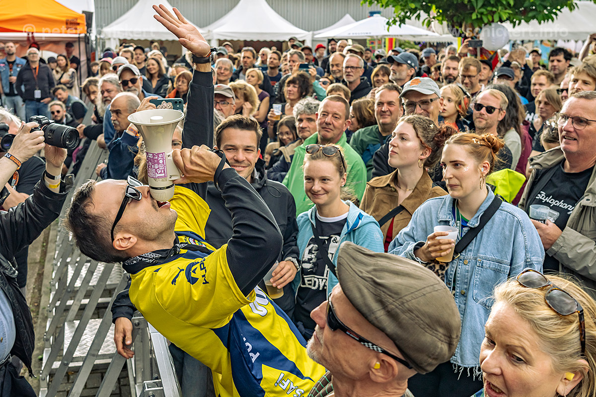Alarm! TOMMY UND DIE TELEBOYS geben pünktlich nach Zeitplan Vollgas, erst noch im Publikum, dann auf der großen Bühne. Ihr wilder psychedelischer Garagenkrautpostpunk hat sehr viel Spass gemacht…