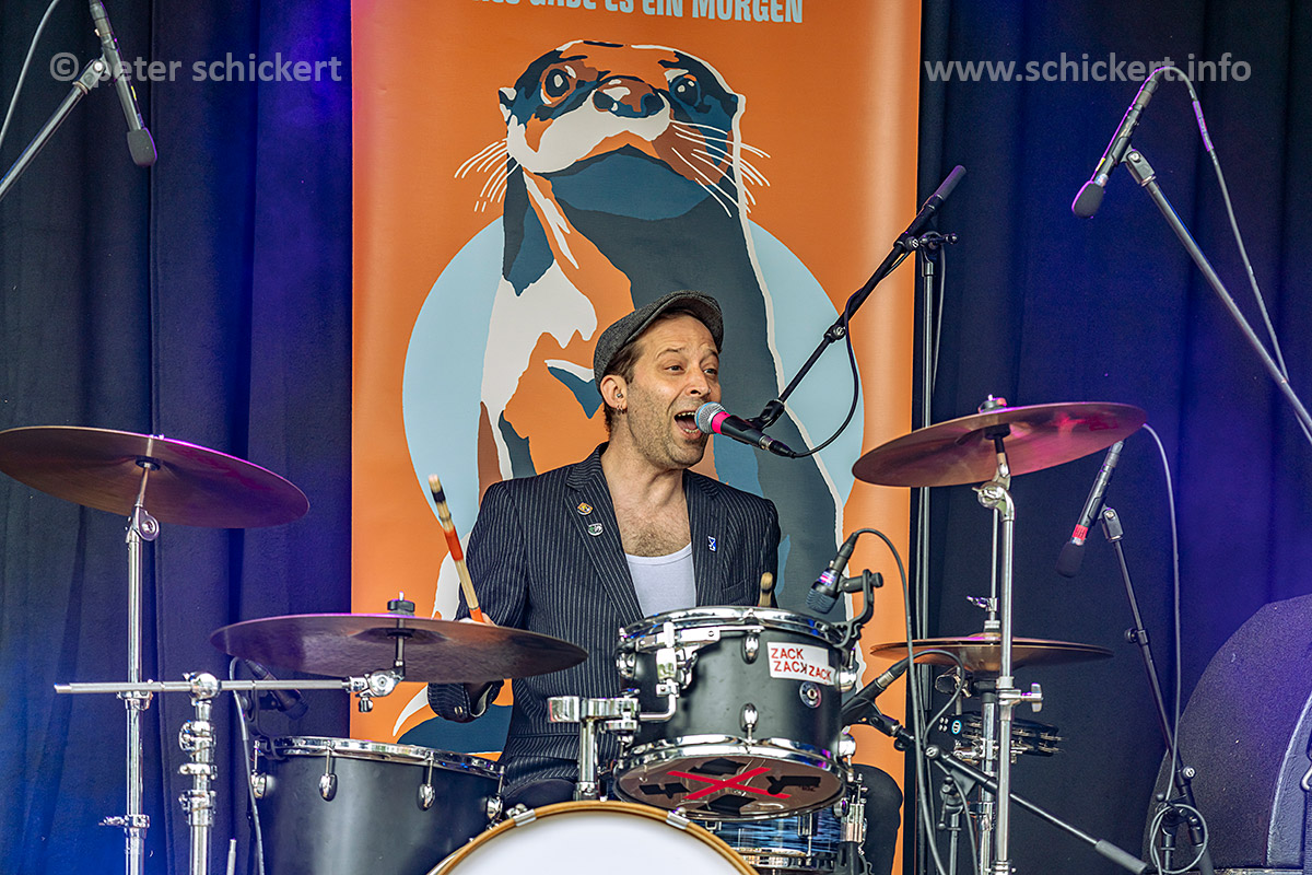 Den Sonderpreis in der Kategorie „Kreativster Bandnamen“ haben sich die drei dem Publikum wieder bestens bekannten Berliner von ACHT EIMER HÜHNERHERZEN ja bereits redlich verdient und der laut Spiegel Achtsame Punkrock kann trotz der ungewohnten Uhrzeit überzeugen…fängt gut an heute: