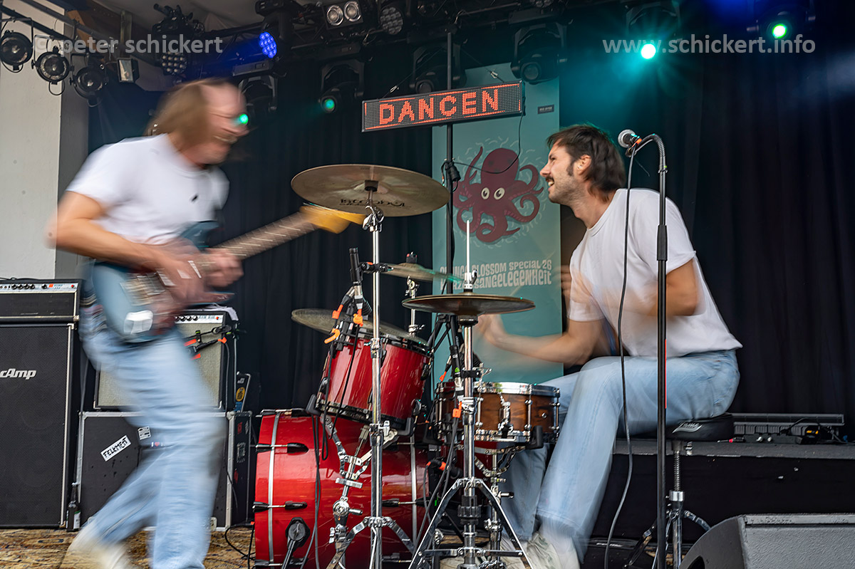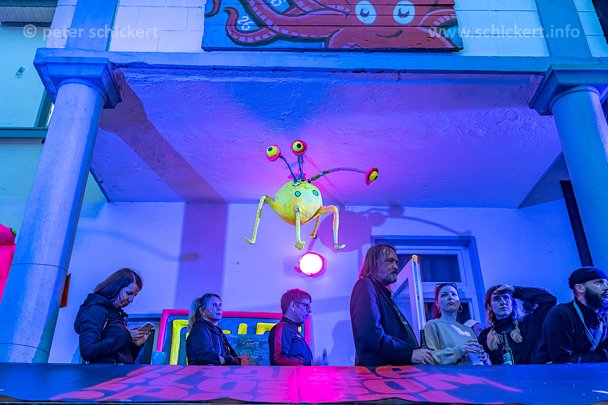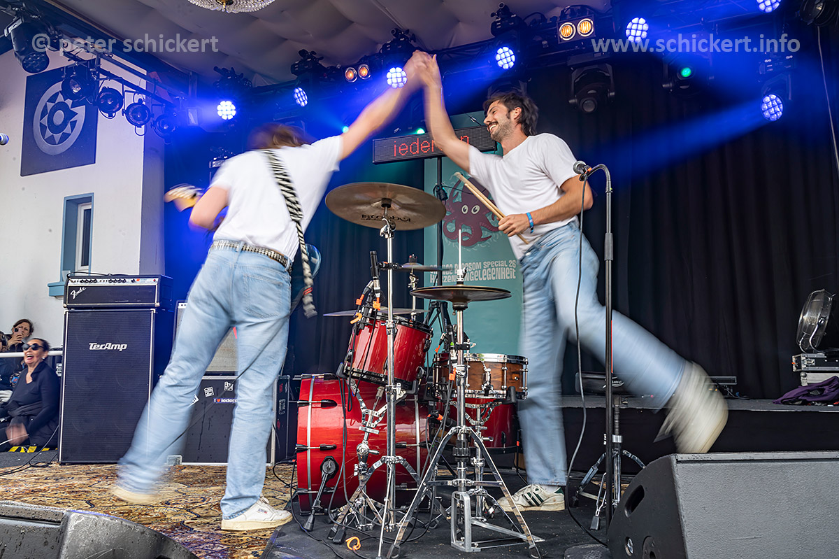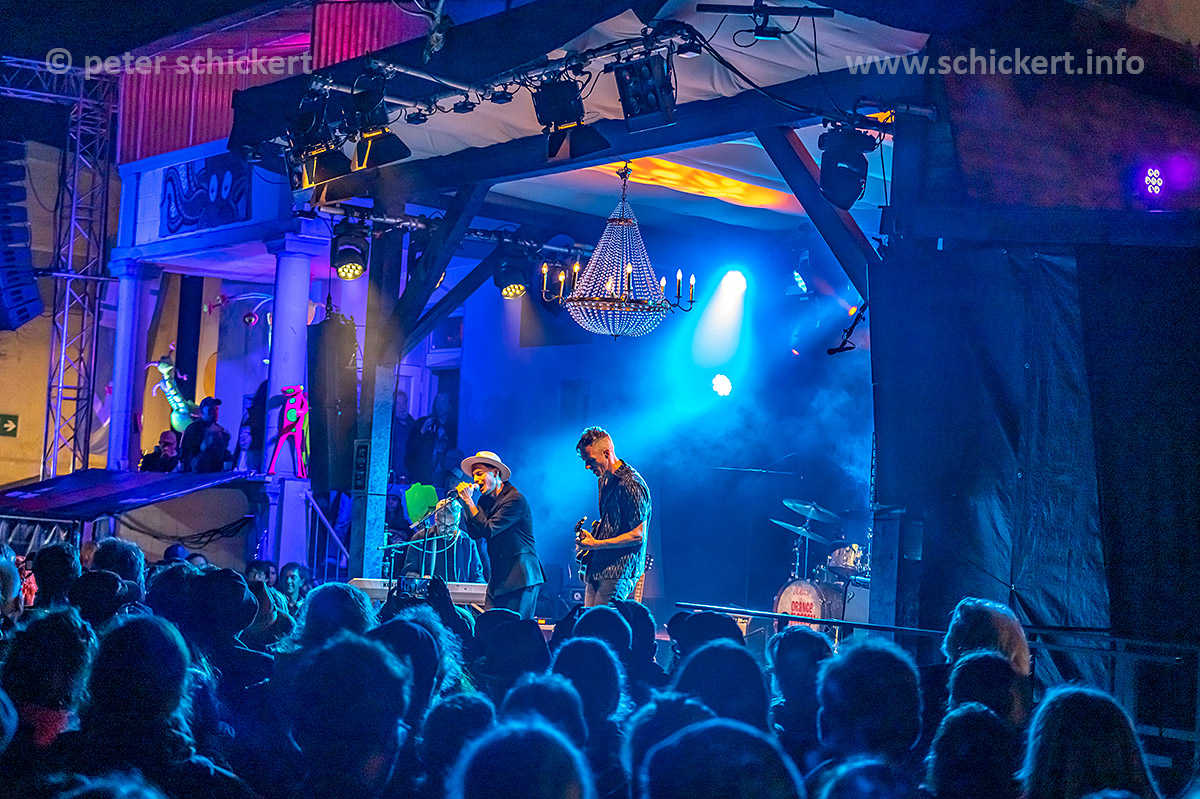 Was ist denn bloss hier los? Die zwei aus Emmerich mit dem seltsamen Namen machen auf der Bühne Alarm für 5. Dann wird mal eben das ganze Publikum in fast biblischer Manier in zwei Hälften geteilt. Von der Musik habe ich kaum etwas mitbekommen, irgendwie passiert ständig in irrem Tempo irgendwo irgendwas völlig anderes. Macht aber sehr viel Spaß dieser Vollgas-Auftritt, wer Gelegenheit hat die beiden positiv verrückten live zu sehen: Hingehen!!!