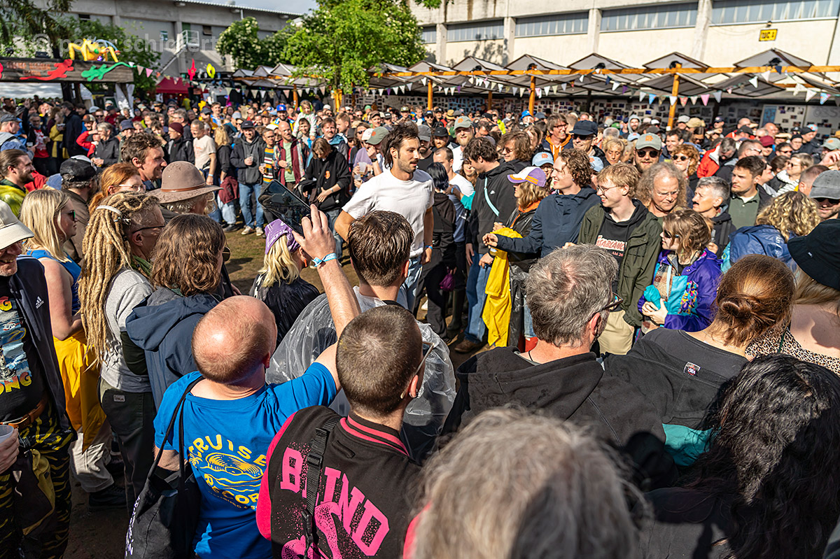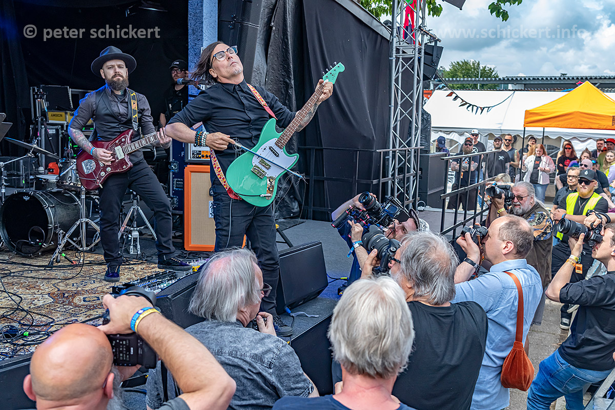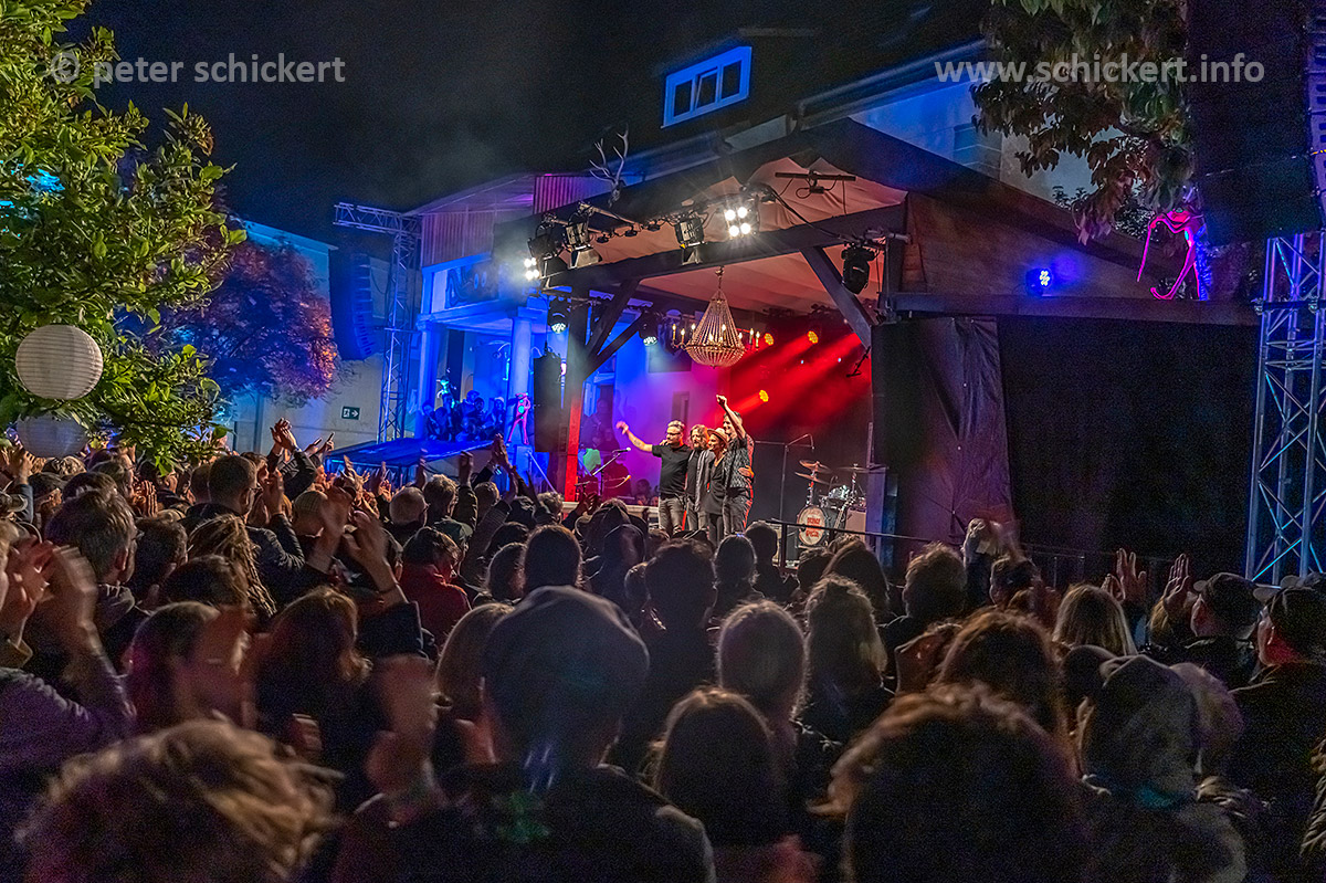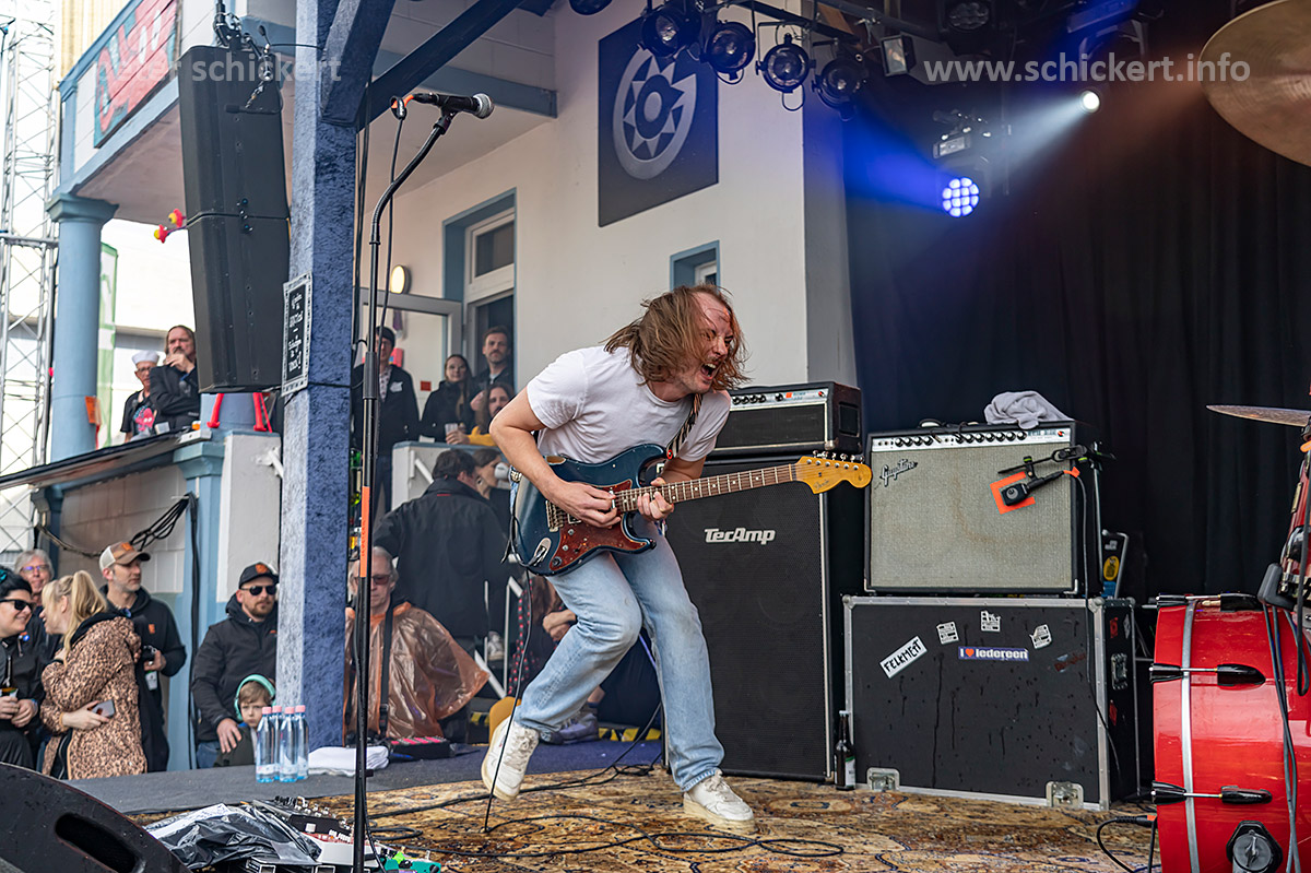 Was ist denn bloss hier los? Die zwei aus Emmerich mit dem seltsamen Namen machen auf der Bühne Alarm für 5. Dann wird mal eben das ganze Publikum in fast biblischer Manier in zwei Hälften geteilt. Von der Musik habe ich kaum etwas mitbekommen, irgendwie passiert ständig in irrem Tempo irgendwo irgendwas völlig anderes. Macht aber sehr viel Spaß dieser Vollgas-Auftritt, wer Gelegenheit hat die beiden positiv verrückten live zu sehen: Hingehen!!!