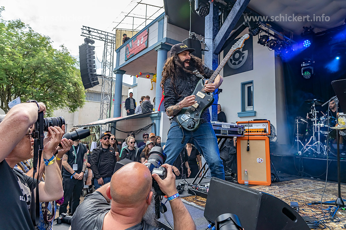 Und dann kommt auch noch der große Regen. Den Auftritt von AFRODIZIAC verpasse ich unter einem Zeltdach, er ist mir aber noch vom letzten Jahr in guter Erinnerung. Zum Auftritt von Brockhoff bin ich dann aber wieder dabei und der Regen lässt langsam nach. Der gelungene Auftritt war die nassen Füsse definitiv wert. Auch das Publikum ist trotz des Starkregens und der anschliessenden Schlammschlacht noch fast vollständig vertreten. Aussergewöhnlich…