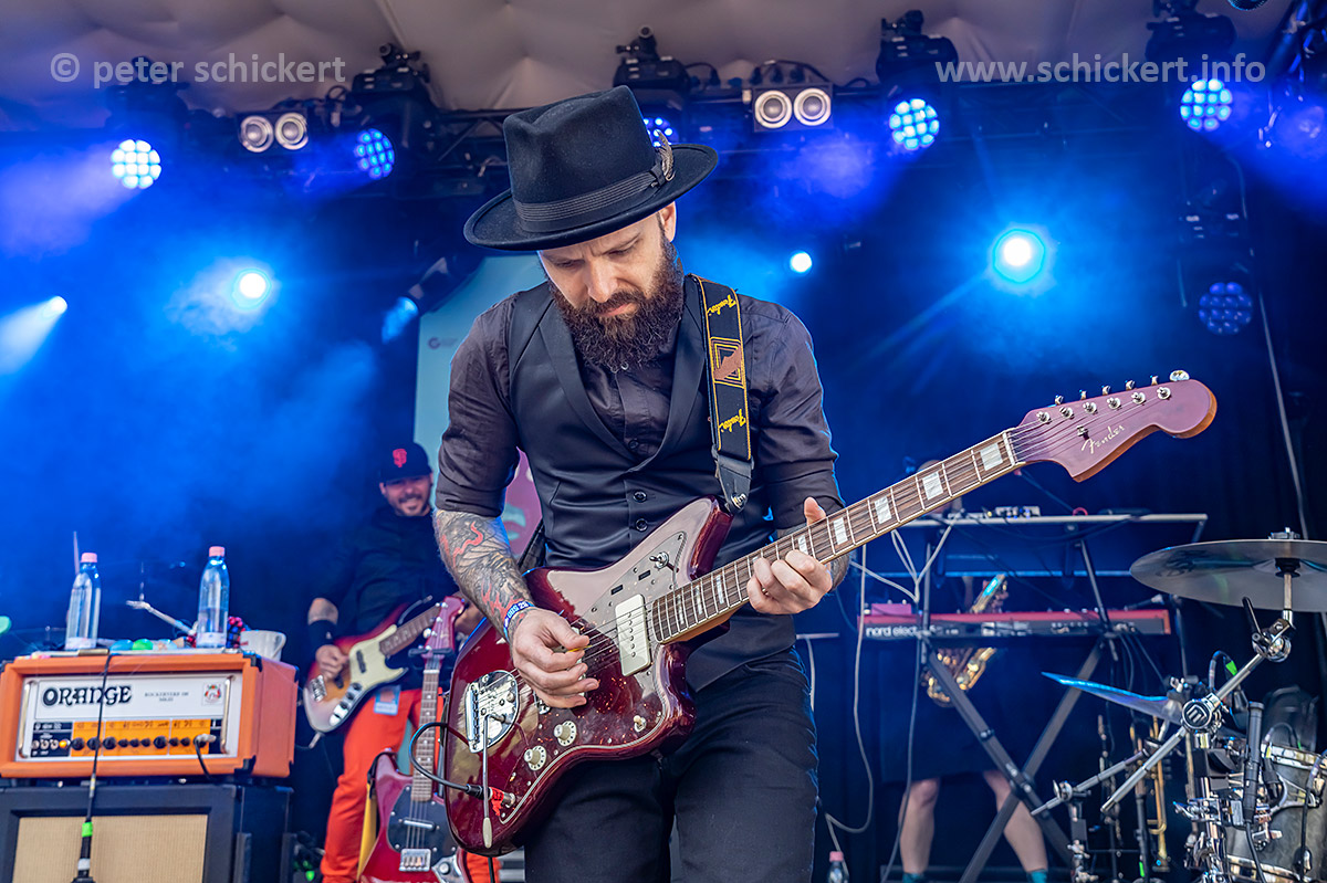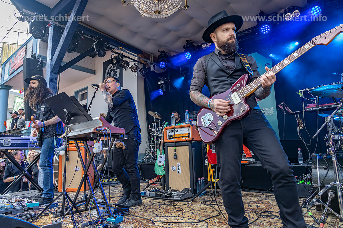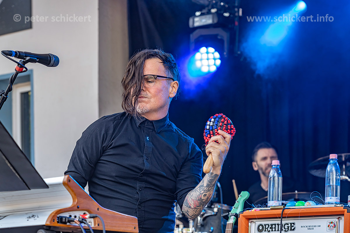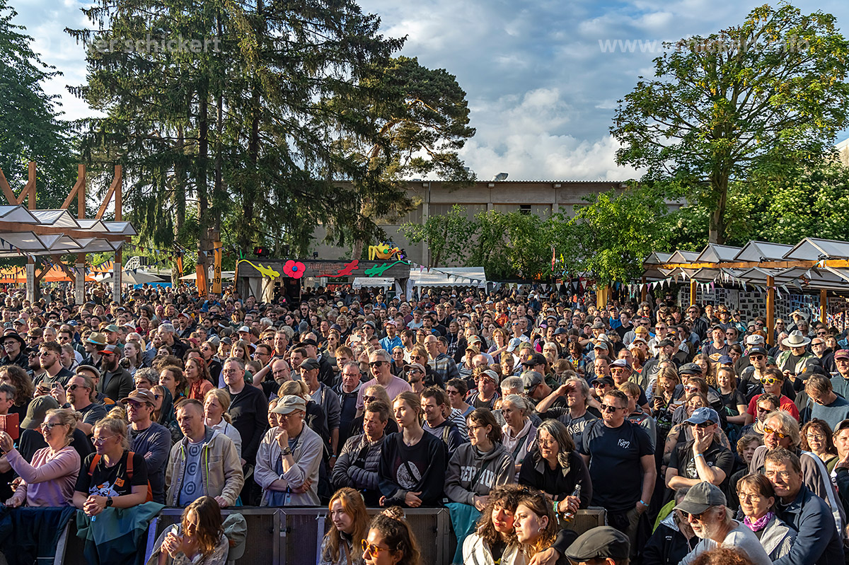 Auf MARLO war ich an diesem Wochenende am meisten gespannt, finden sich doch einige seiner Songs schon länger in meiner Playlist mit den Favoriten. Leider hat sich aber schon oft gezeigt, dass ein tolles Album und ein ebensolches Live-Konzert zwei völlig unterschiedliche Paar Schuhe sind. Nicht so bei MARLO. Was der unscheinbare junge Mann aus Hamburg mit seiner Band hier abliefert ist einfach klasse. Als hätte er nie etwas anderes gemacht hat er das Publikum trotz des einsetzenden Regens sofort auf seiner Seite.