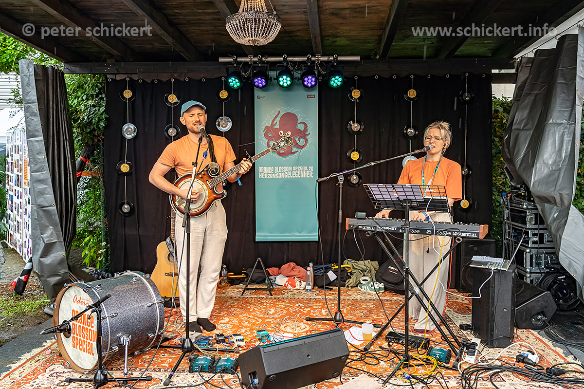 Auf der Minibühne sorgen dann die beiden symphatischen Briten von Sylvan Weekends für Stimmung, der relaxte Folk-Pop Sound gefällt auch ohne das kurzfristig ausgefallene Schlagzeug.