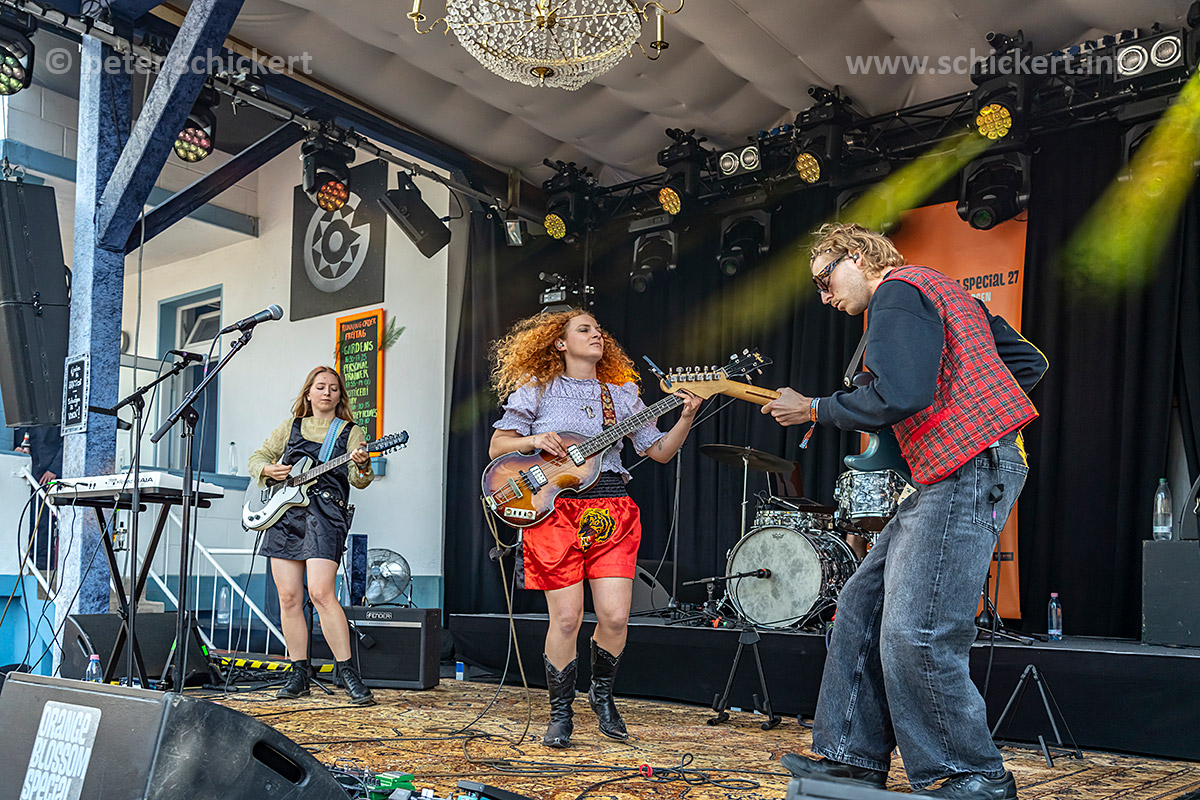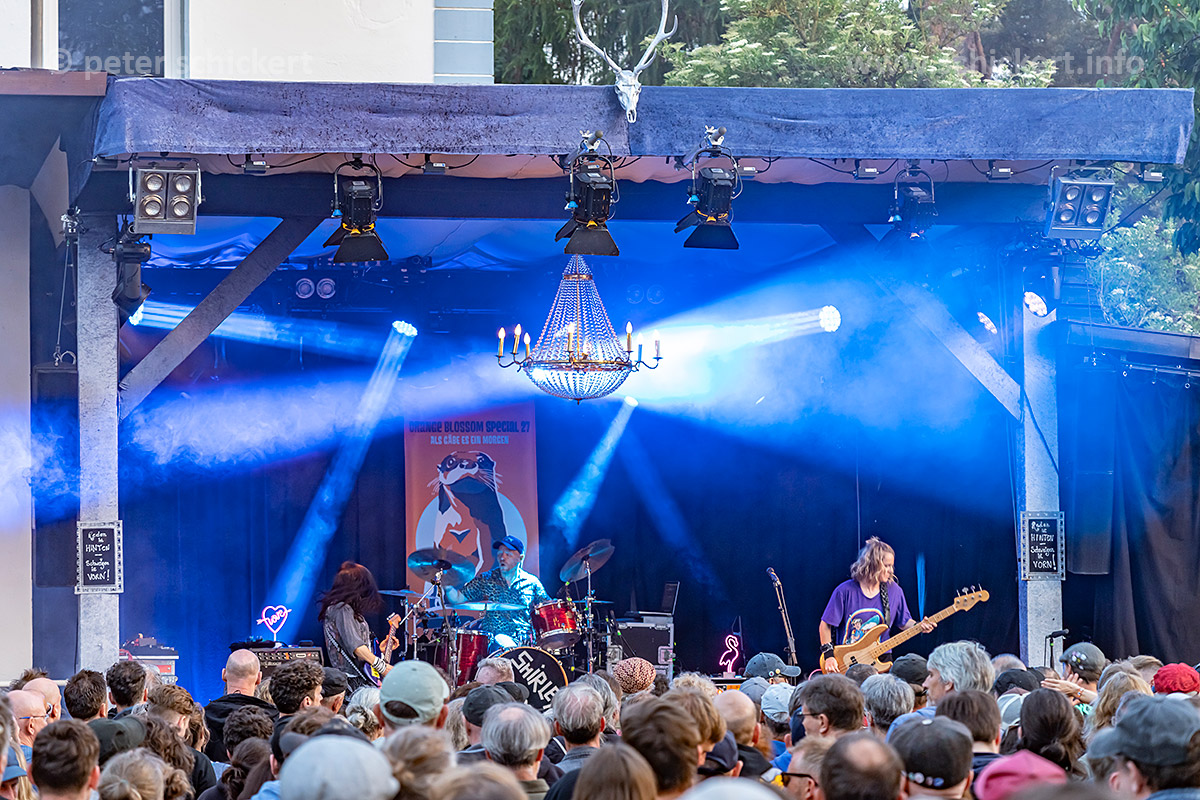 SHIRLEY HOLMES waren schon 2022 als Ersatz dabei und konnten da absolut überzeugen, und auch diesmal macht der Punkrock der drei Berliner viel Spass, und das Wetter spielt auch immer noch mit: