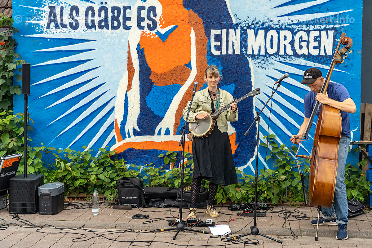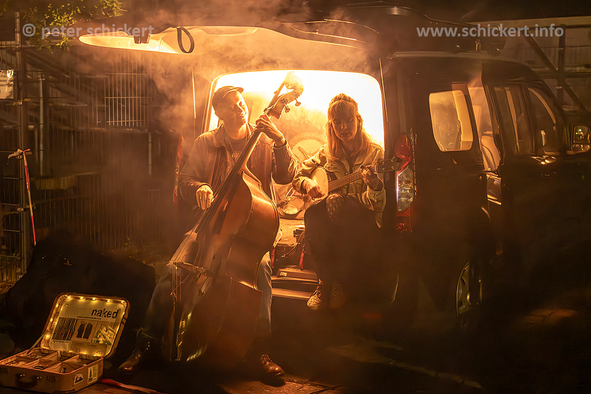 Und wie immer beim wunderbaren OBS – auch an völlig unerwarteten Stellen gibt es Musik, auf dem Weg zum Zelt, spät Abends nach dem letzten Gig im Fahrzeug auf dem Parkplatz und manchnmal sogar im Freibad Batze. Heute mit dem neuseeländischen Kontrabassist Pierce Black und der Banjospielerin Julia Zech: STEREO NAKED